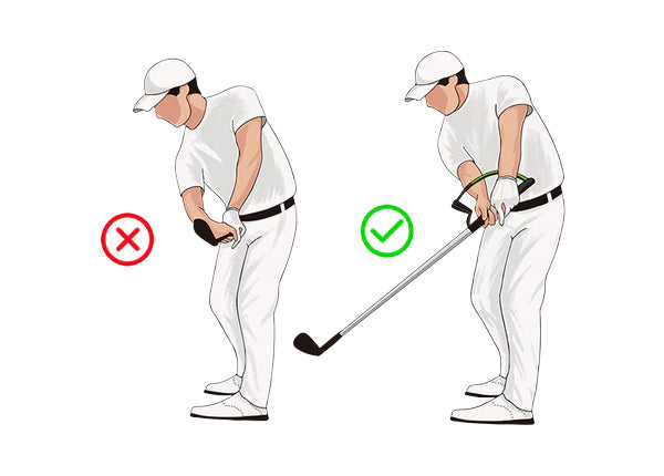 theHANGER promotes instant structural changes in your hands and wrists to keep your swing on plane through the back swing and down swing.
